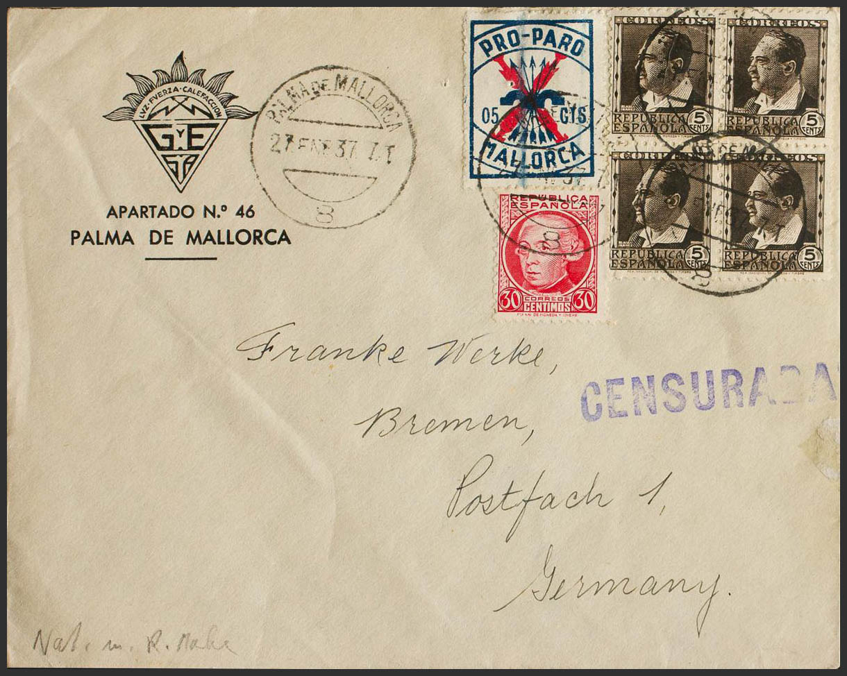 Islas Baleares. Historia Postal. MAGNIFICA E INUSUAL FRANQUEO.