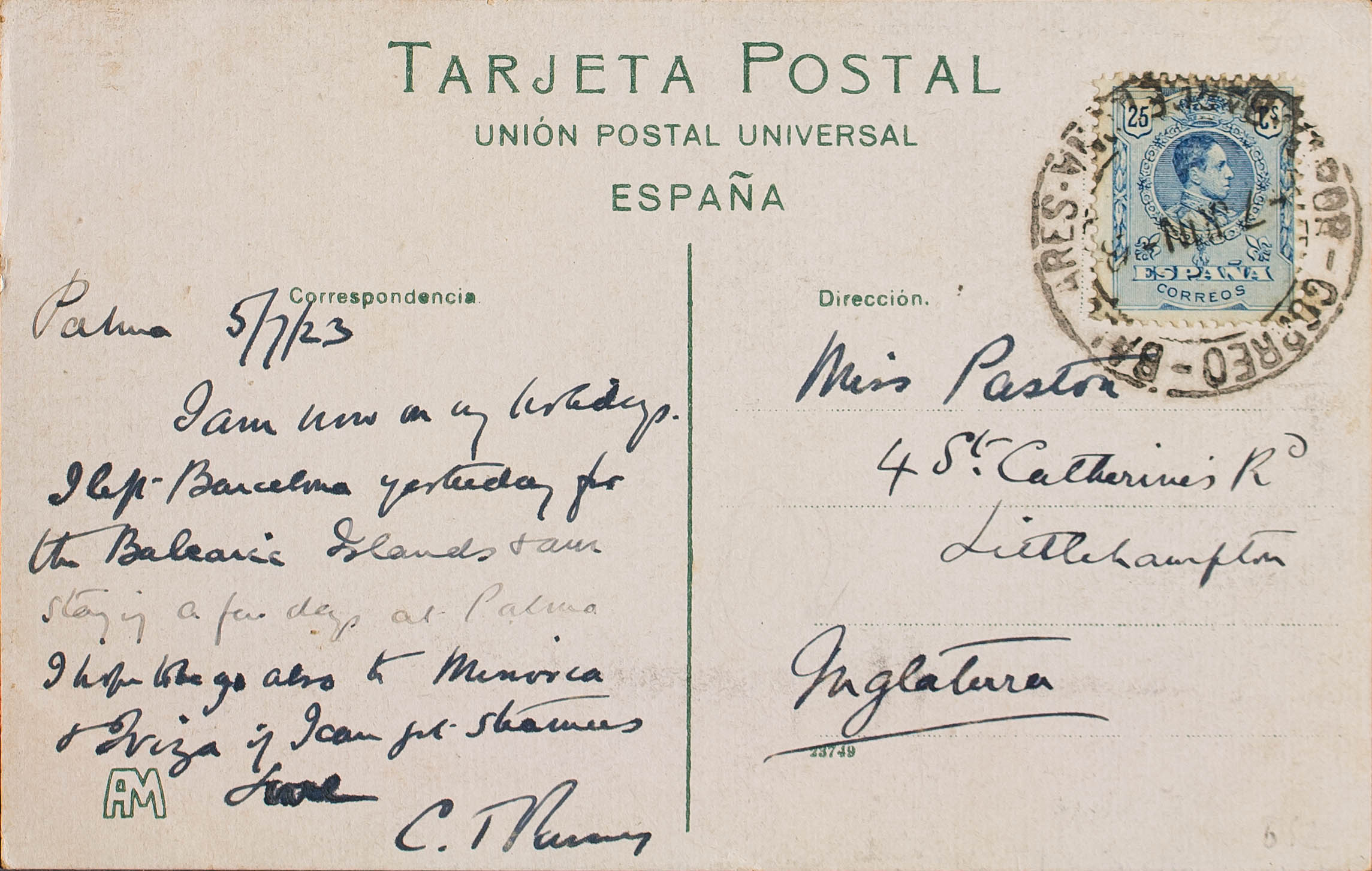 Islas Baleares. Historia Postal. POR CORREO BALEARES-BARCELONA. MAGNIFICA.