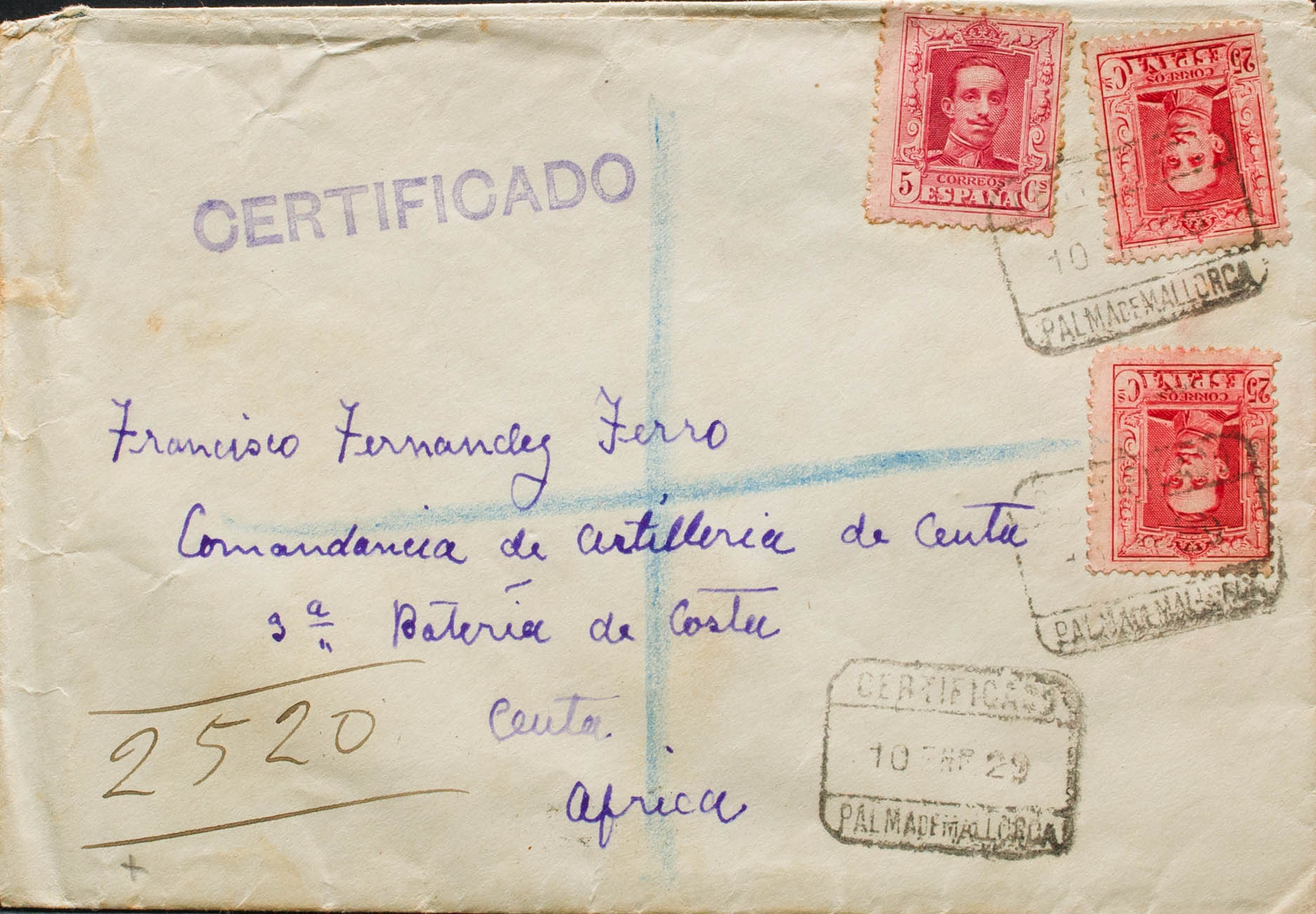 Islas Baleares. Historia Postal. CERTIFICADO / PALMA DE MALLORCA. MAGNIFICA.
