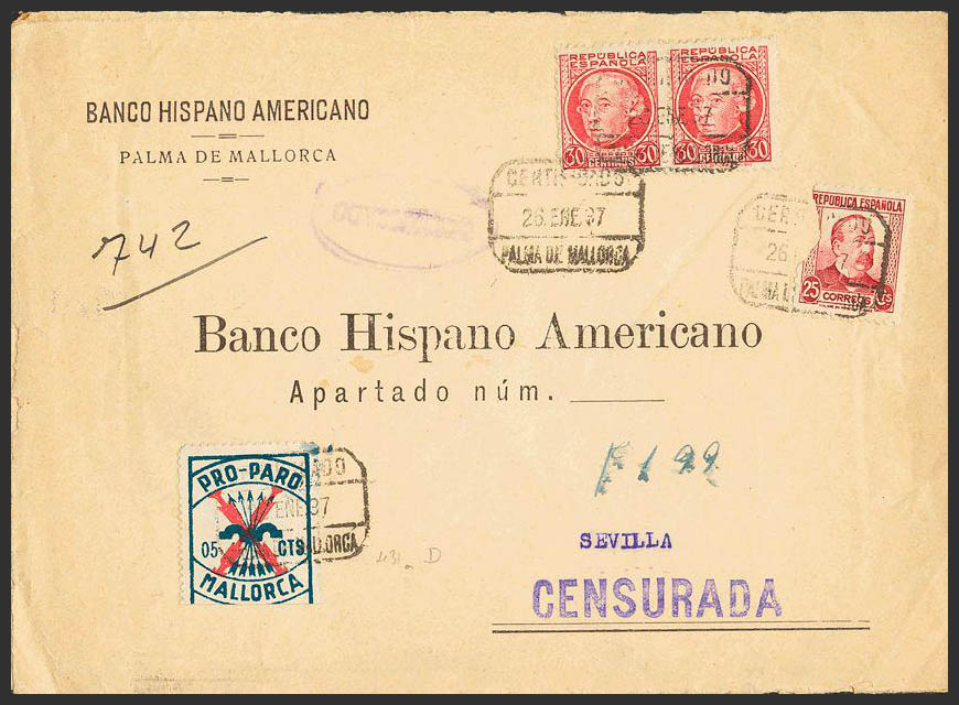 Islas Baleares. Historia Postal. (El 25 cts con defecto). PALMA DE MALLORCA / CERTIFICADO. MAGNIFICA.