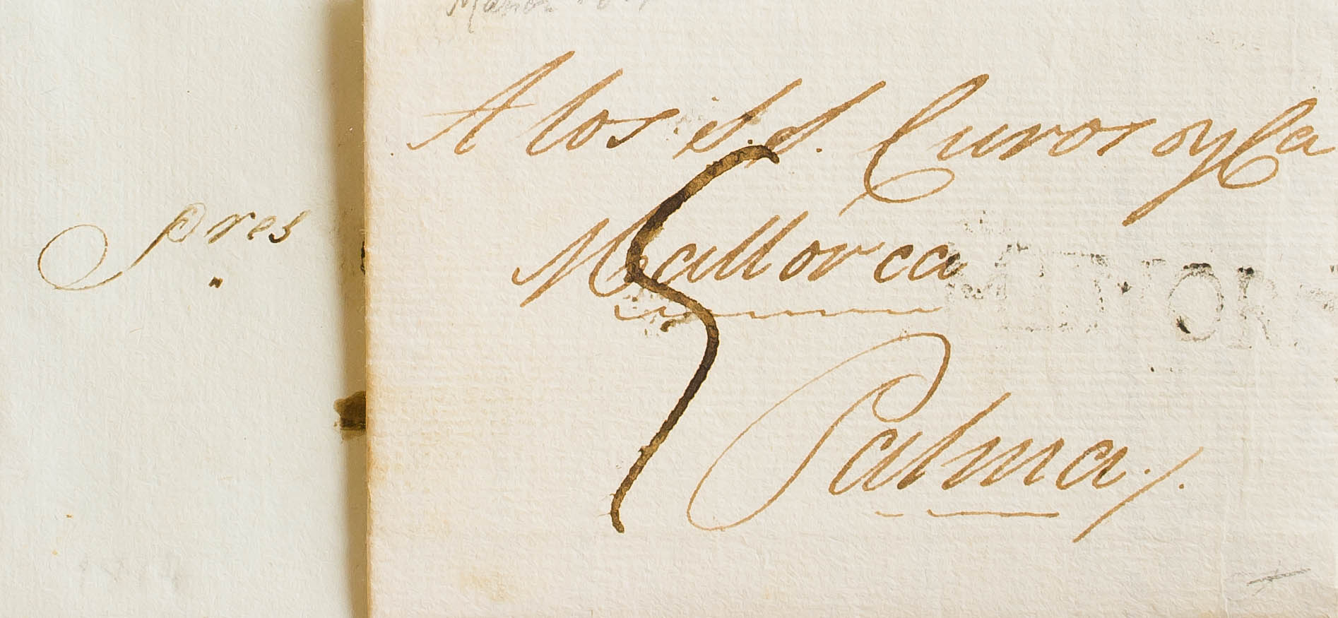(1814ca). Dos cartas de MAHON a PALMA DE MALLORCA, ambas con marcas (P.E.6) edición 2004. MAGNIFICAS.