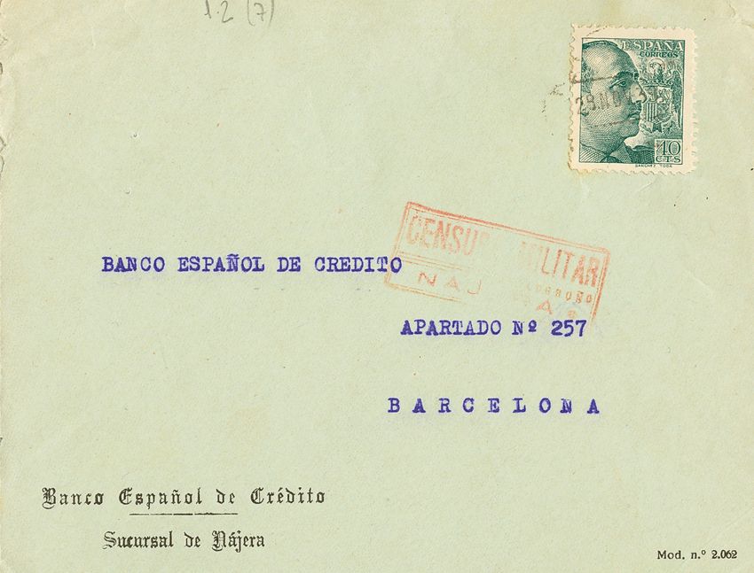 La Rioja. Historia Postal. CENSURA MILITAR / NAJERA. MAGNIFICA.