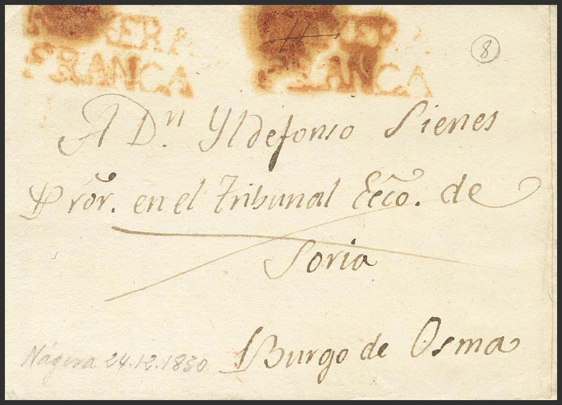 1830. NAJERA a BURGO DE OSMA. Marca NAXERA / FRANCA, en rojo estampada dos veces (P.E.6) edición 2004. MAGNIFICA Y MUY RARA.