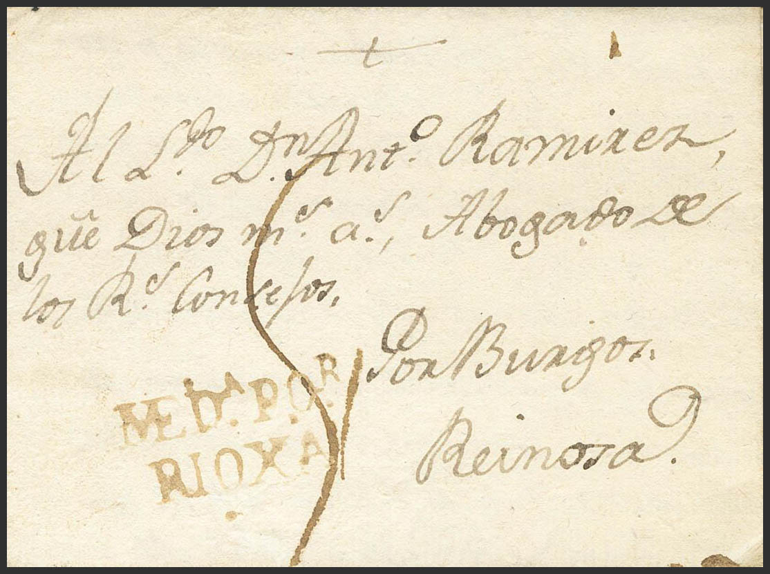 (1806ca). MEDINA DE POMAR a REINOSA. Marca MEDª POR / RIOXA, en tinta de escribir (P.E.2) edición 2004. MAGNIFICA.