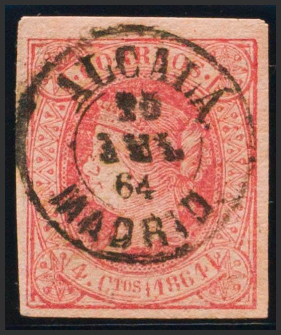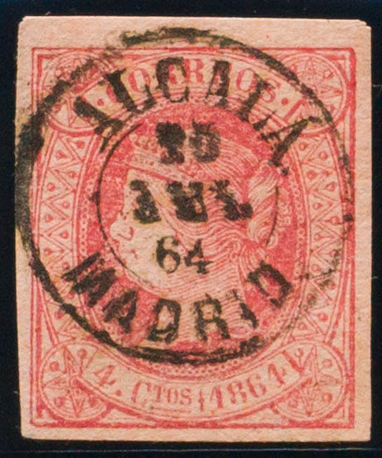 64. 1864. 4 cuartos rojo. Matasello ALCALA / MADRID. MAGNIFICO.