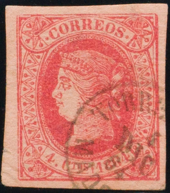 64. 1864. 4 cuartos rojo. Matasello TORRELAGUNA / MADRID. MAGNIFICO Y RARO.