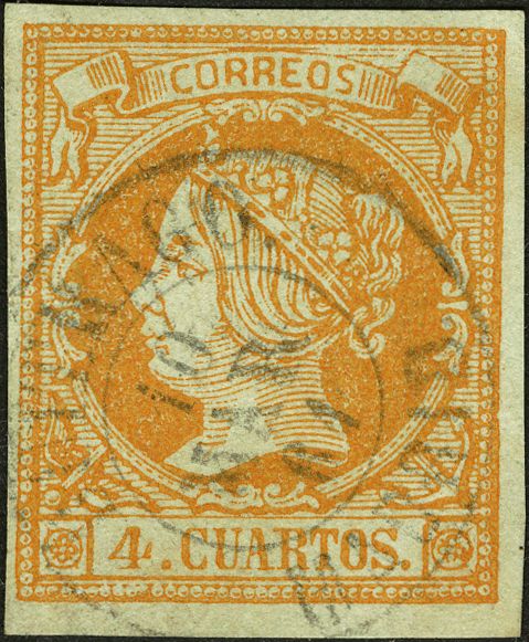 52. 1860. 4 cuartos amarillo. Matasello BUITRAGO / MADRID.
