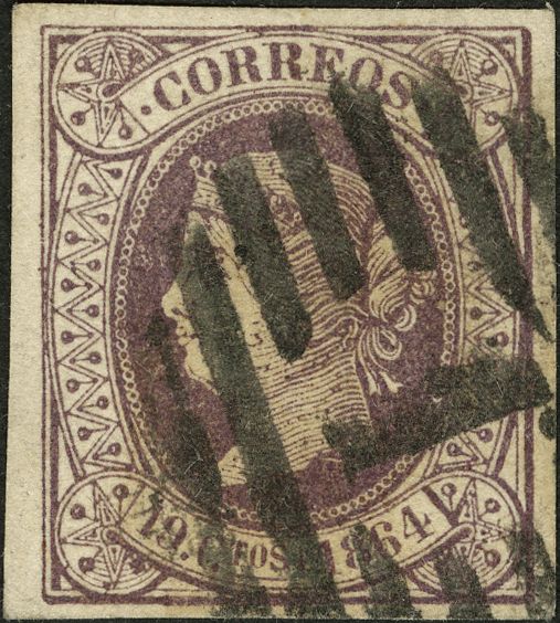 66. 1864. 19 cuartos violeta. Matasello PARRILLA Nº1. MAGNIFICO Edifil 2007: 235 Euros