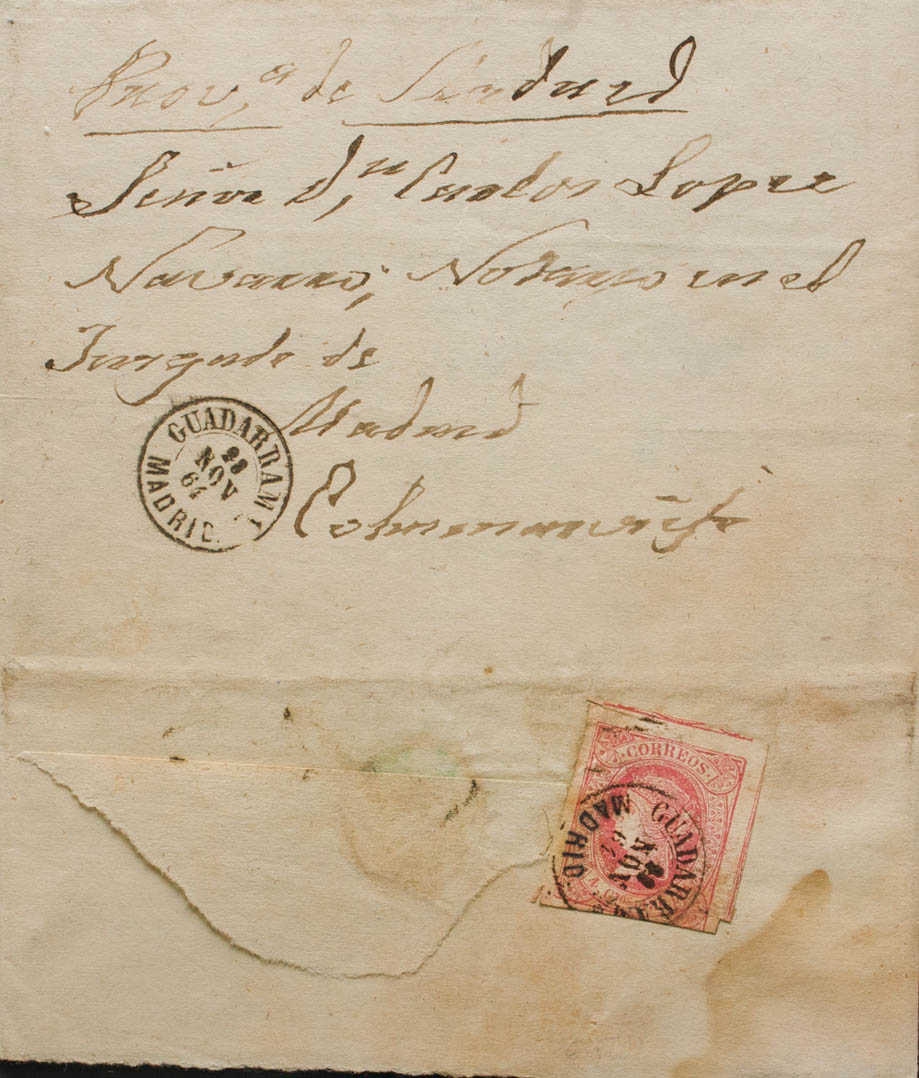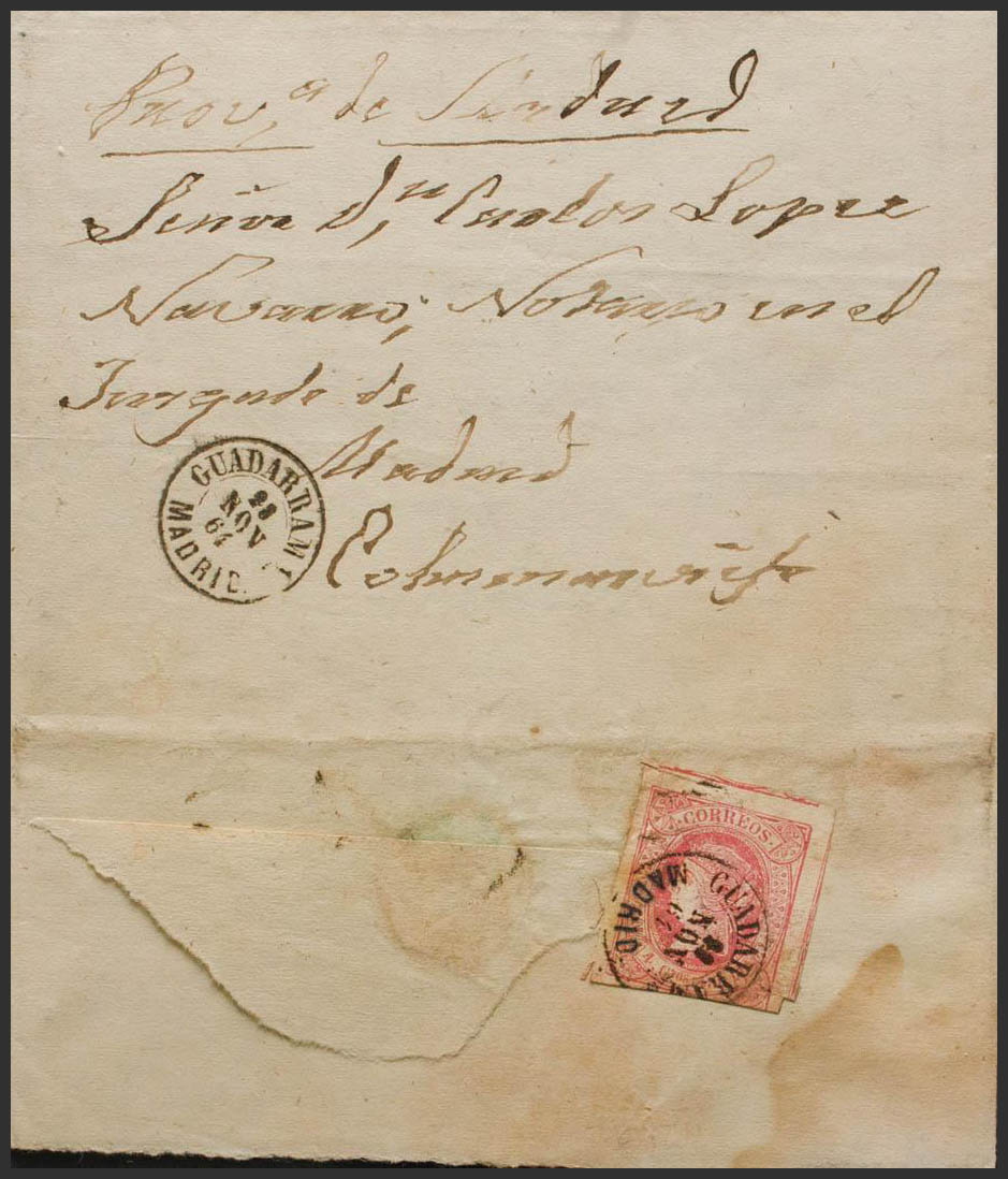 Madrid. Historia Postal. GUADARRAMA / MADRID, franqueada al dorso. MAGNIFICA Y RARISIMA.