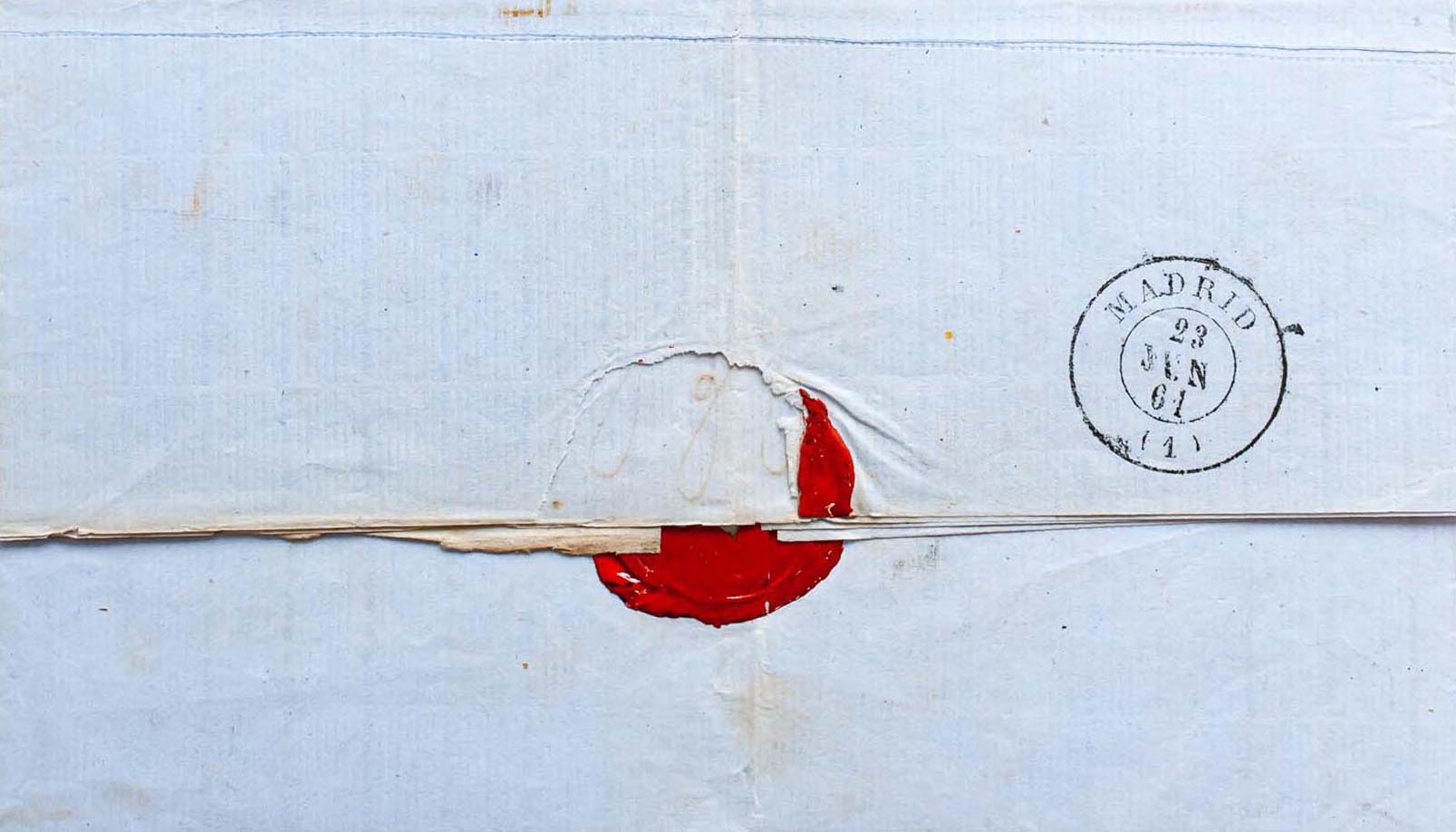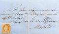 52. 1861. 4 cuartos naranja. LA SOLANA a MADRID. Matasello GUADARRAMA / MADRID. MAGNIFICA E INUSUAL.