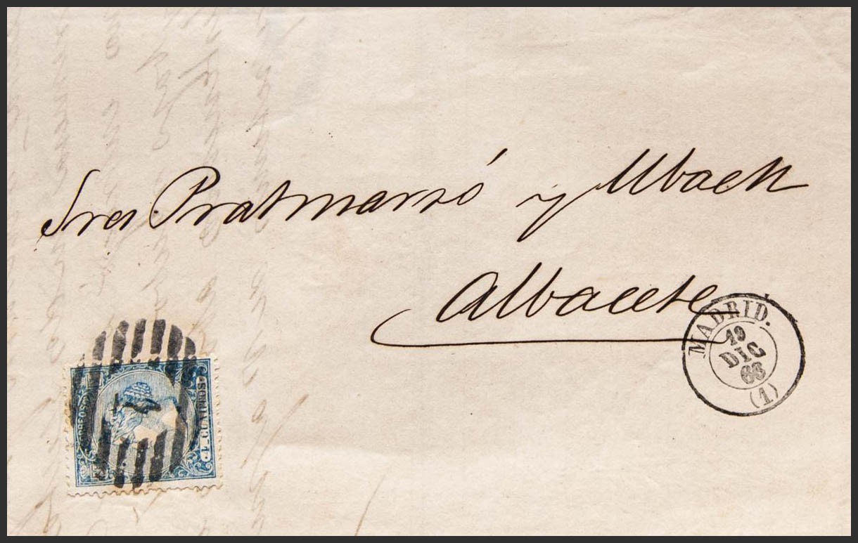 Madrid. Historia Postal. PARRILLA CON Nº1, de Madrid. MAGNIFICA.