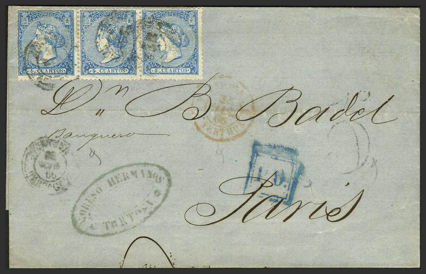Madrid. Historia Postal. Dirigida a FRANCIA. Inusual combinación.