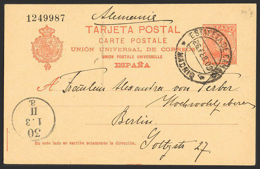 Madrid. Historia Postal. EP42. ESTAFETA DE CAMBIO / (MADRID). MAGNIFICO.