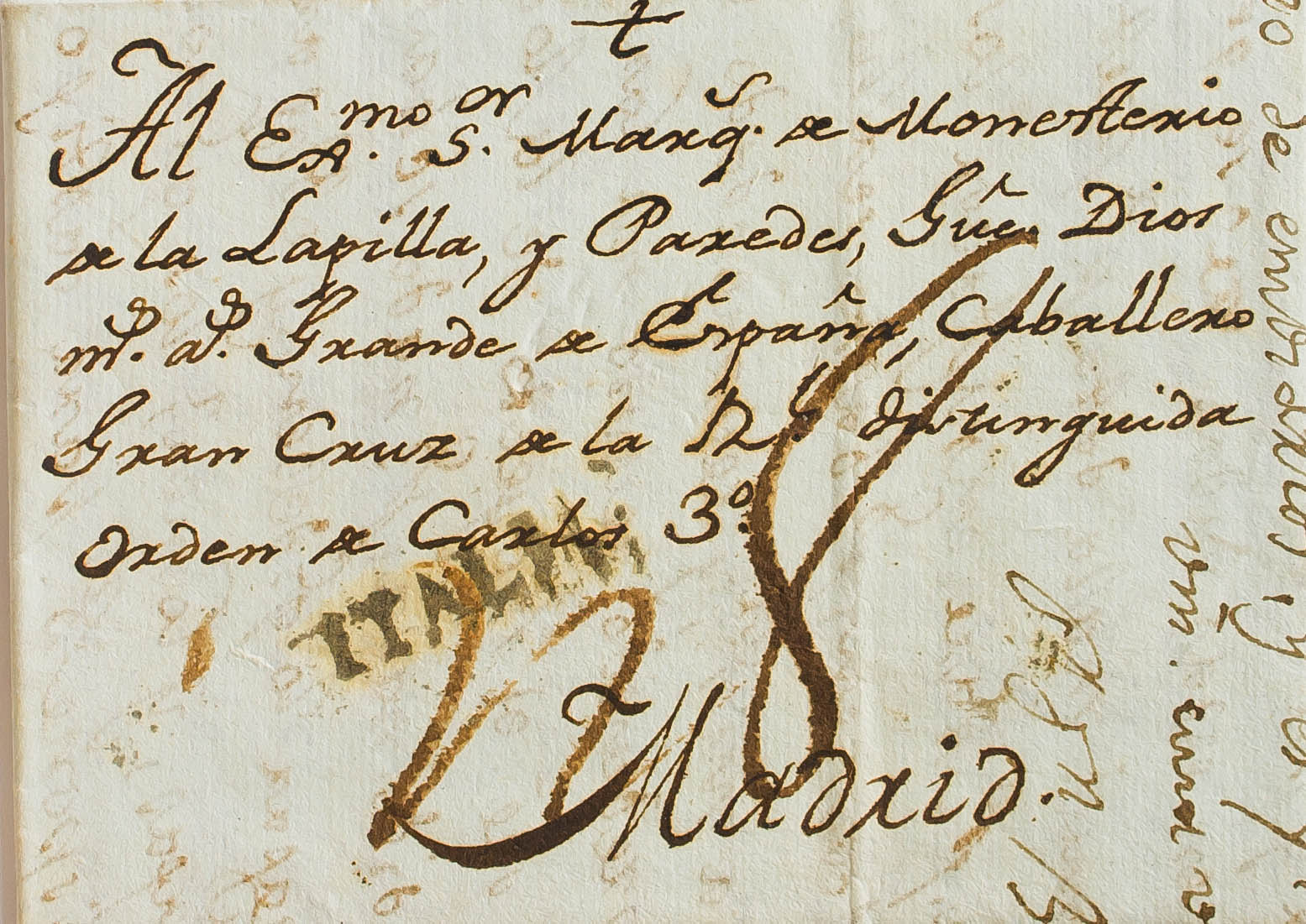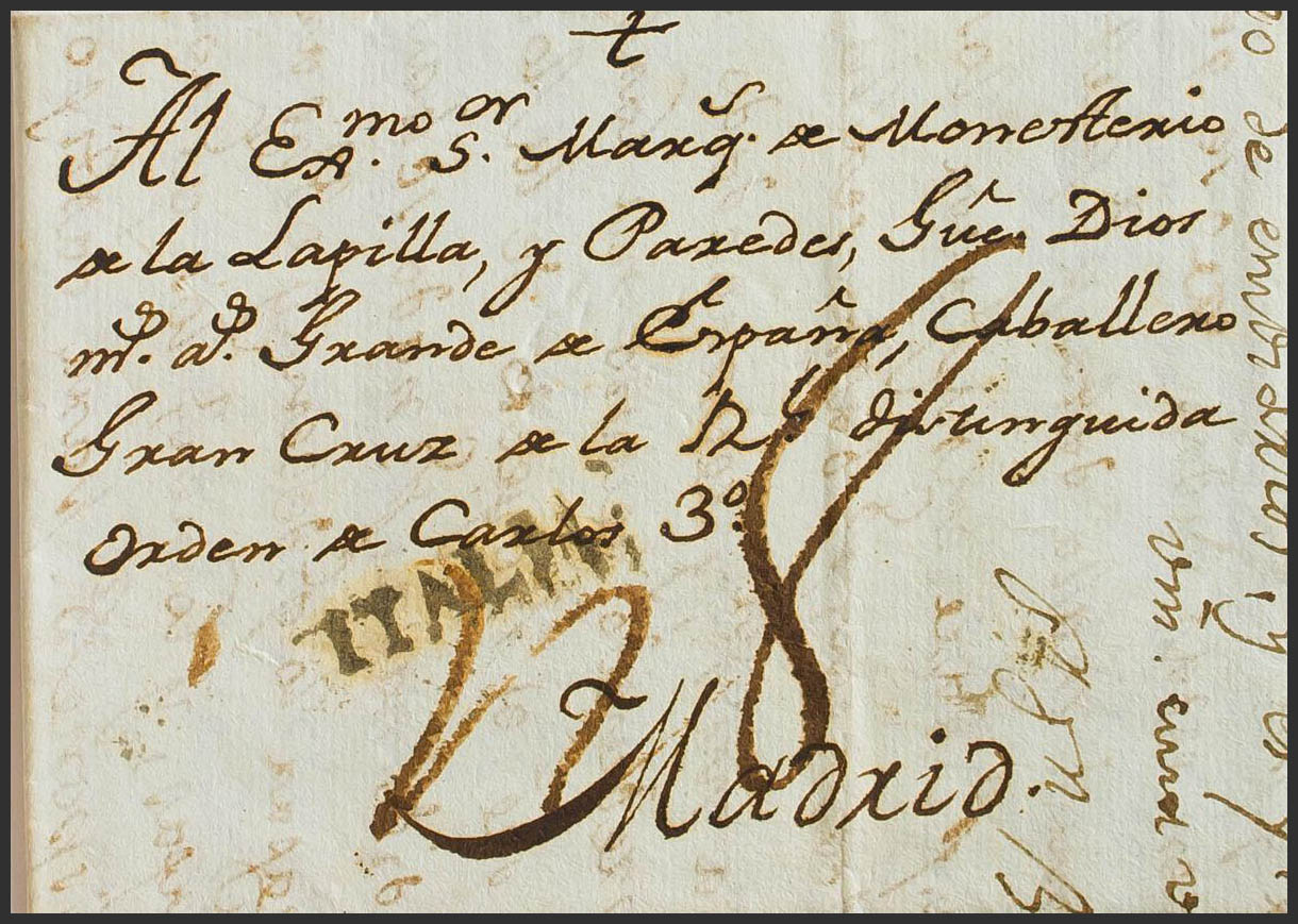 1803. GENOVA a MADRID. Marca ITALIA, a la llegada (P.E.114) edición 2004. MAGNIFICA Y RARISIMA.