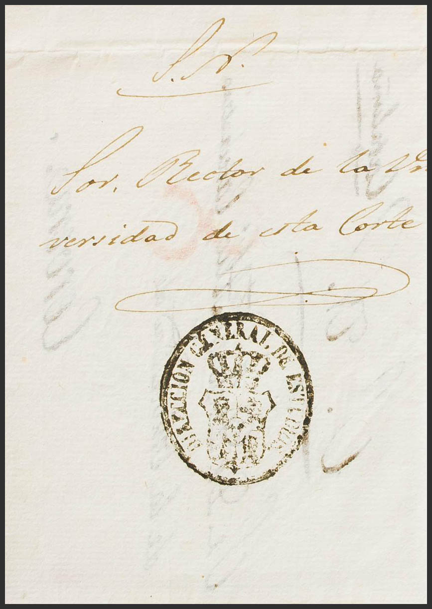 1837. CERVERA a MADRID. Sello negro DIRECCION GENERAL DE ESTUDIOS. MAGNIFICA Y RARISIMA, NO CATALOGADA.
