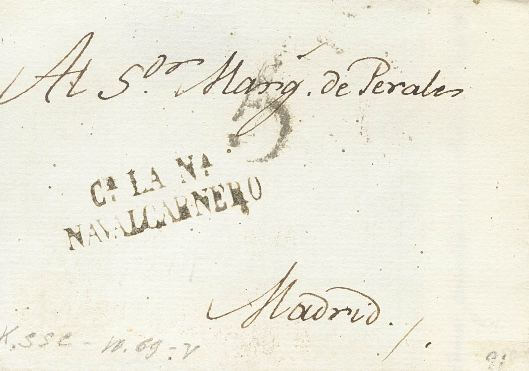 1819. NAVALCARNERO (MADRID) a MADRID. Marca Cª. LA. Nª. / NAVALCARNERO, en negro (P.E.2) edición 2004. MAGNIFICA Y RARA.