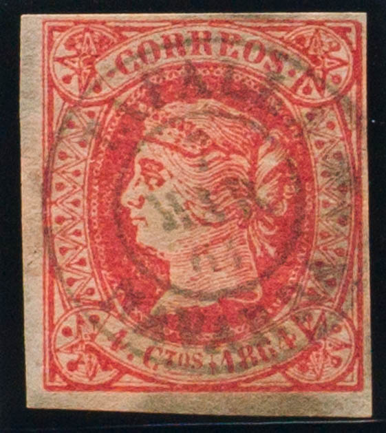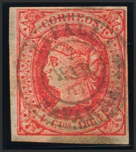 64. 1864. 4 cuartos rojo. Matasello TAFALLA / NAVARRA. MAGNIFICO.