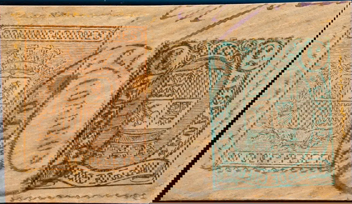 Navarra. Filatelia. CARTERIA / CORREOS / OLITE, sobre fragmento. MAGNIFICA Y RARA.