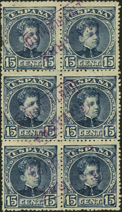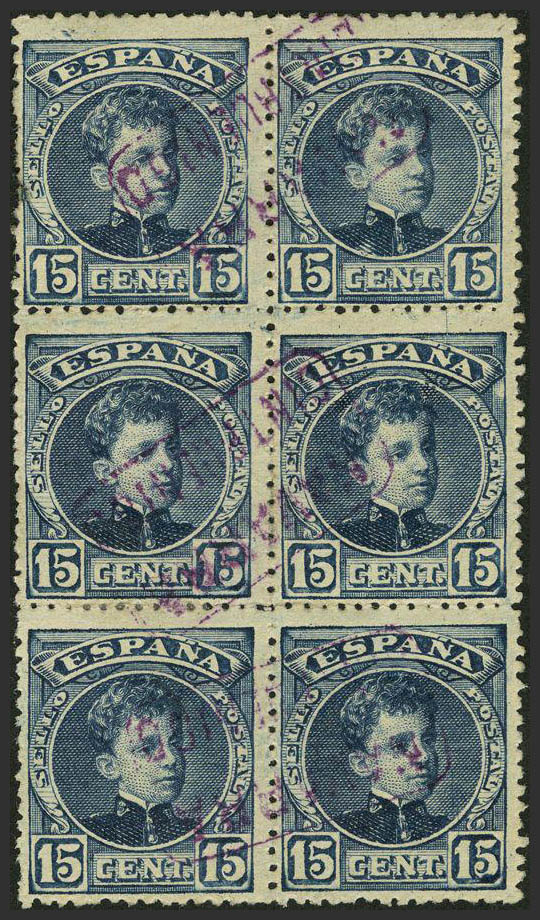 244(6). 1889. 15 cts, bloque de seis. Matasello carterÃa NAVARRA / CINTRUENIGO. MAGNIFICO.