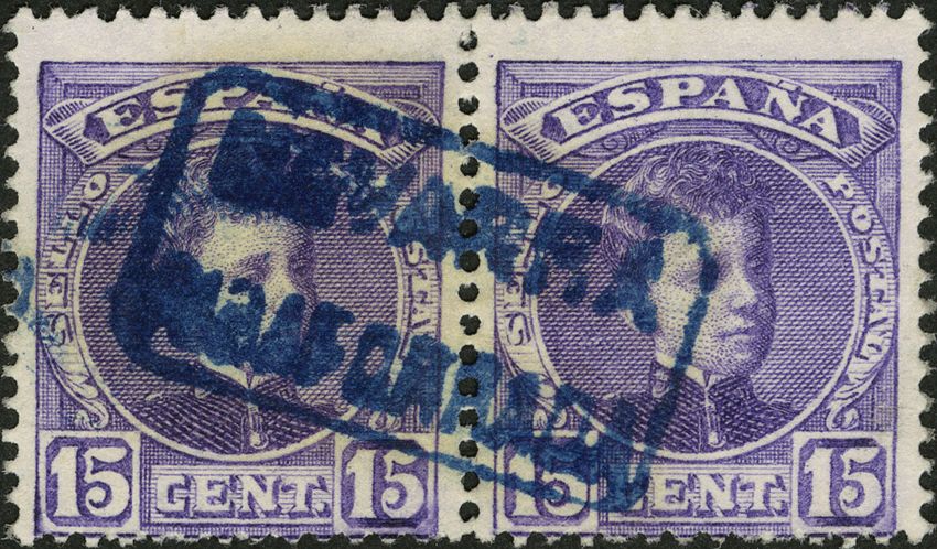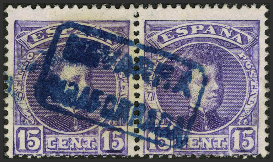 246(2). 1901. 15 cts violeta, pareja. Matasello carterÃa NAVARRA / RIBAFORRADA. MAGNIFICO.