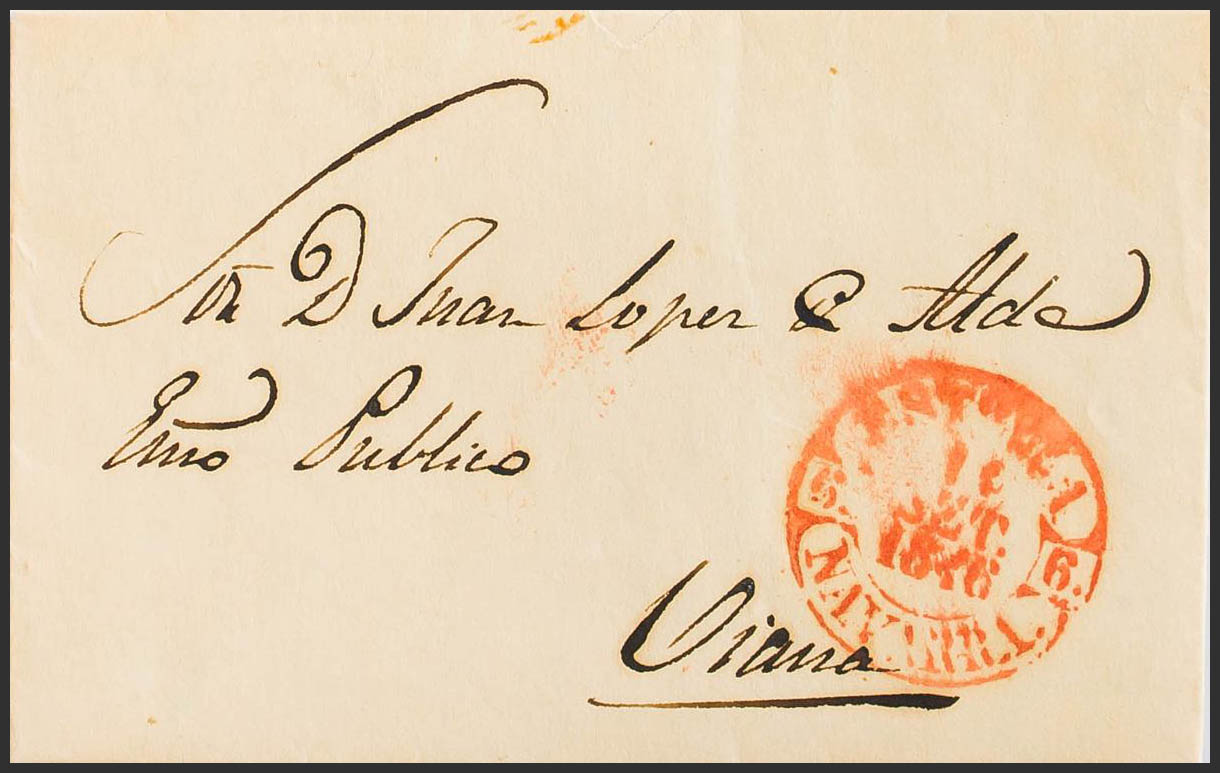1846. ESTELLA a VIANA. Baeza ESTELLA / NAVARRA, en rojo. MAGNIFICA.