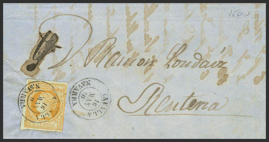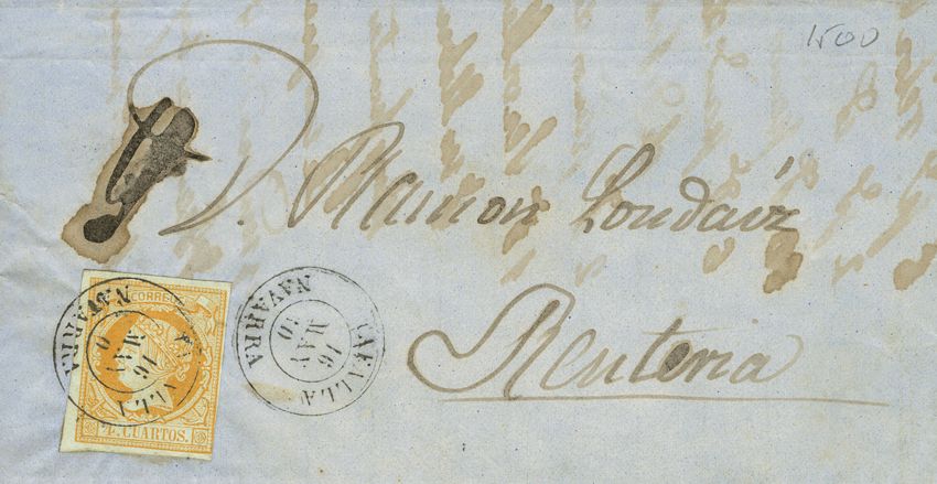 52. 1860. 4 cuartos amarillo. TAFALLA a RENTERIA. Matasello TAFALLA / NAVARRA.