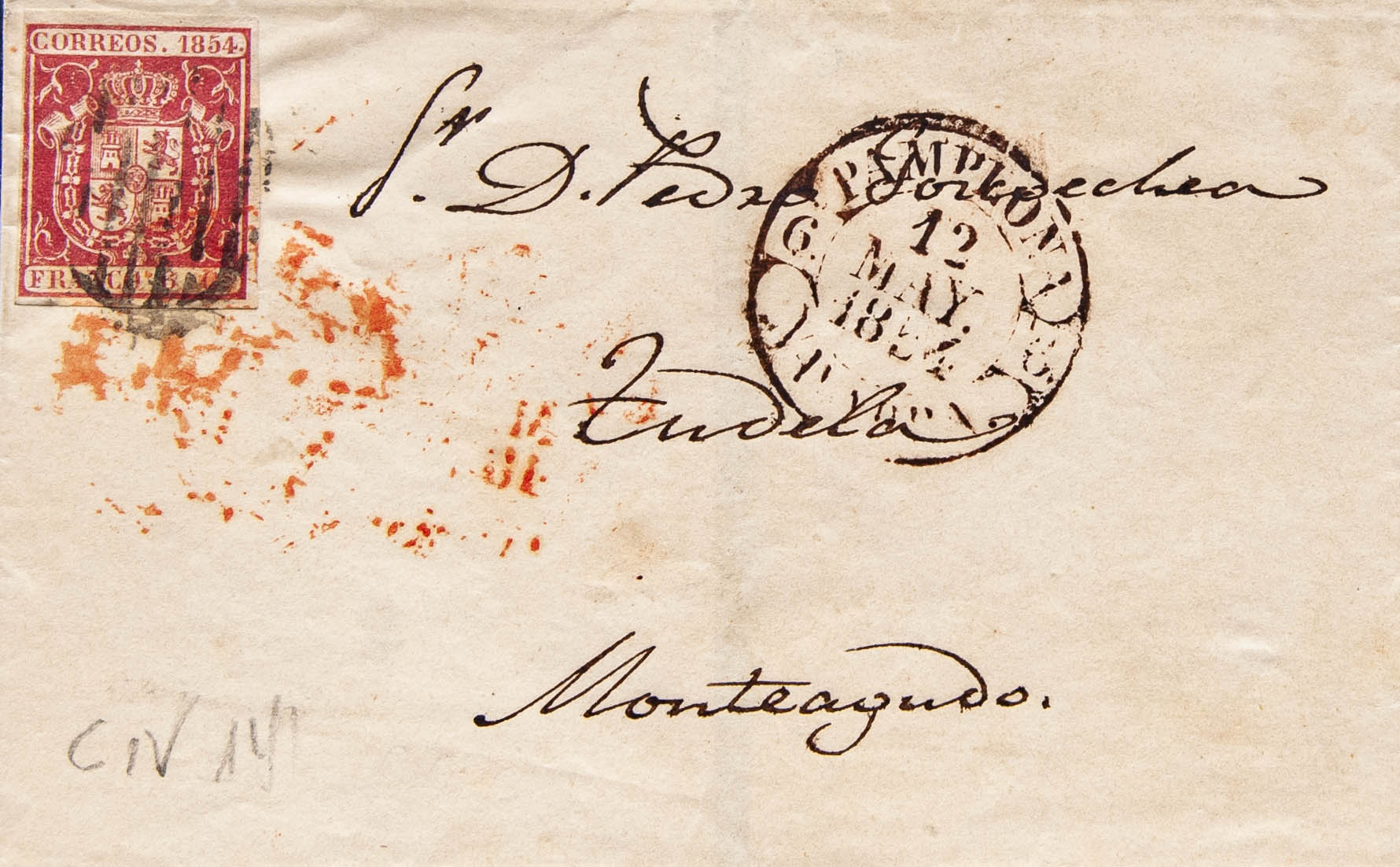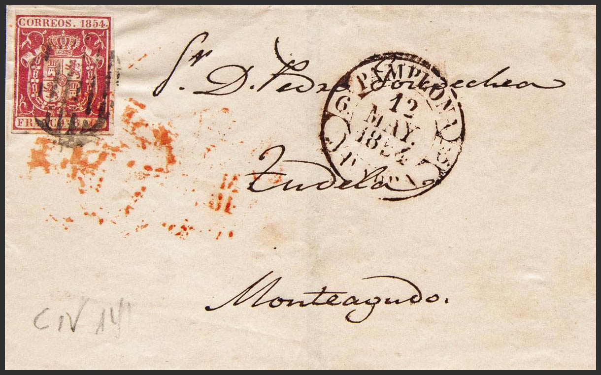 Navarra. Historia Postal. En el frente baeza PAMPLONA / NAVARRA, en rojo. MAGNIFICA.