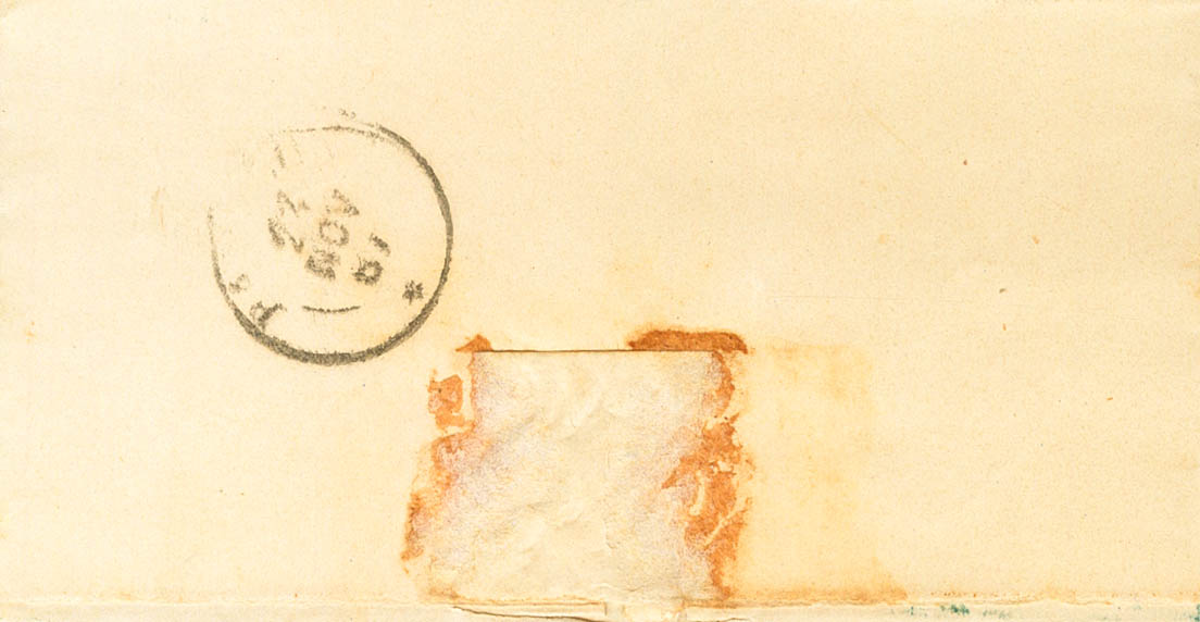 96. 1867. 50 mils castaño amarillo. LEGARDA (NAVARRA) a PAMPLONA. Sello inutilizado con trazos de pluma en cruz y en el frente marca (oval) CARTERIA DE / CORREOS / LEGARDA, en azul. MAGNIFICA Y RARISIMA.