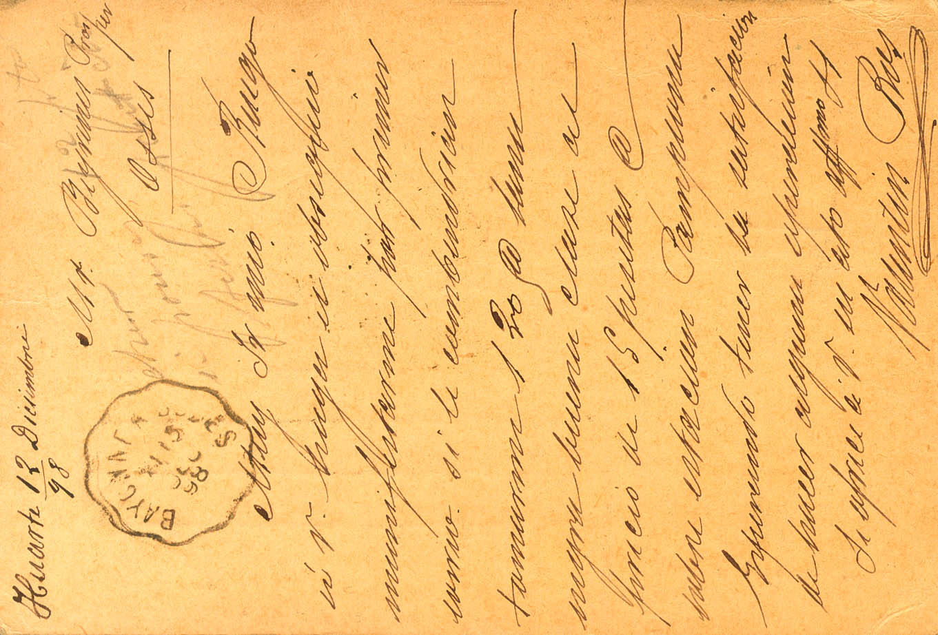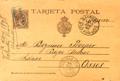 EP27. 1898. 10 cts castaño sobre Tarjeta Entero Postal de HUARTE a OSSES (FRANCIA). Matasello carterÃa NAVARRA / HUARTE, en azul. MAGNIFICA.