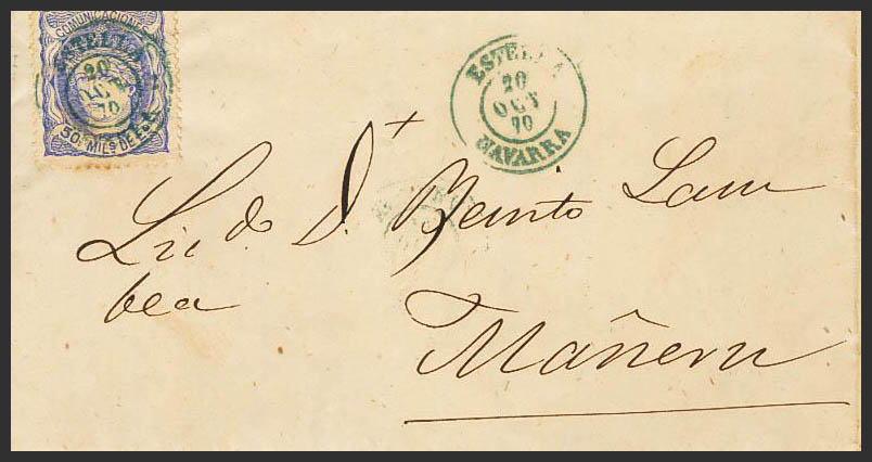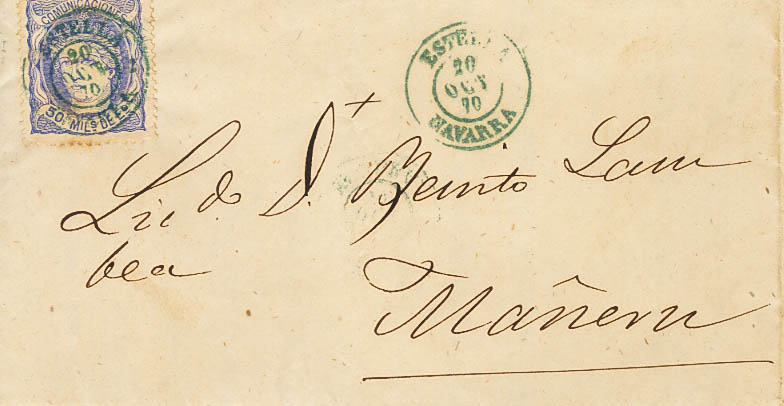Navarra. Historia Postal. ESTELLA / NAVARRA, en azul. MAGNIFICA.