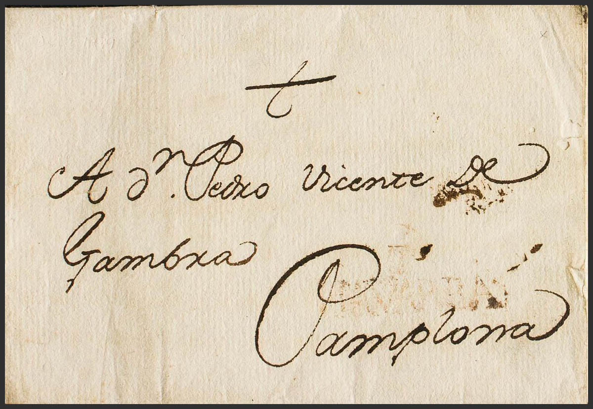 1779. TUDELA a PAMPLONA. Marca T / NAVARRA, en marrón de Tudela (P.E.6) edición 2004. MAGNIFICA Y RARISIMA.