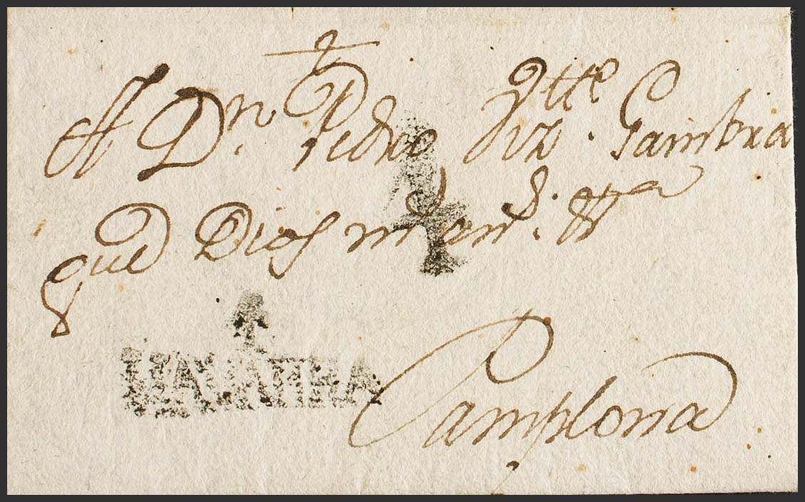 1788. TUDELA a PAMPLONA. Marca T / NAVARRA, de Tudela (P.E.8) edición 2004. MAGNIFICA Y RARISIMA.