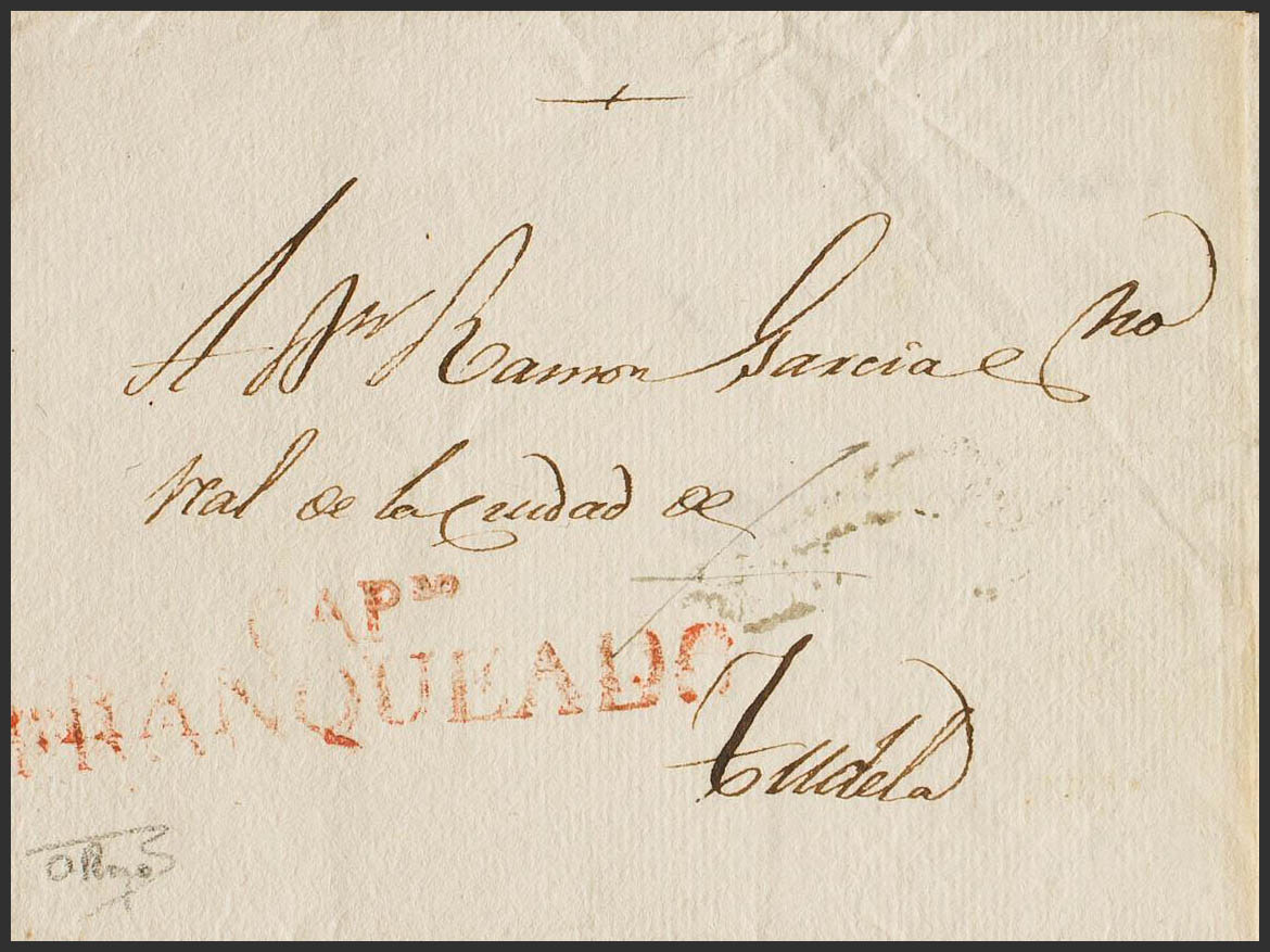 1830. CAPARROSO a TUDELA. Marca CAPSº / FRANQUEADO, en rojo (P.E.8) edición 2004. MAGNIFICA Y RARA.