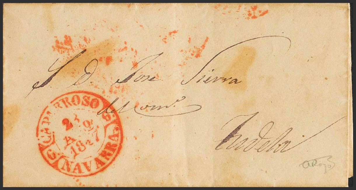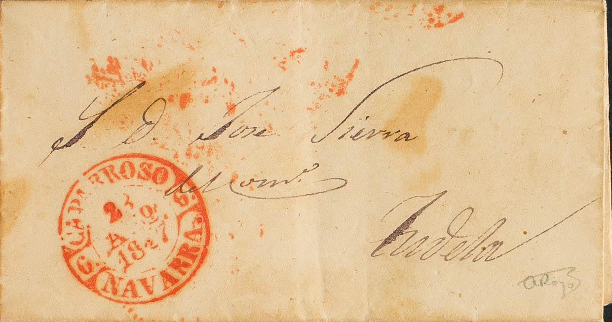 1847. PERALTA a TUDELA. Baeza CAPARROSO / NAVARRA, en rojo. MAGNIFICA.