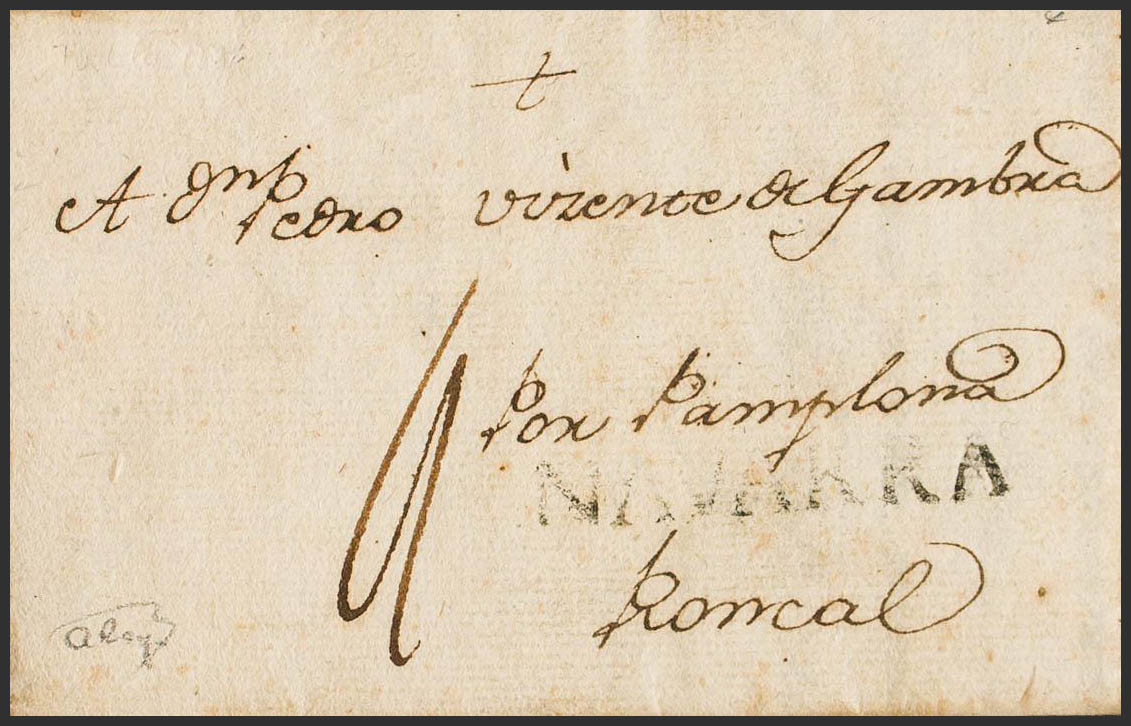 1782. TUDELA a RONCAL. Marca NAVARRA, de Tudela (P.E.7) edición 2004. MAGNIFICA Y MUY RARA.
