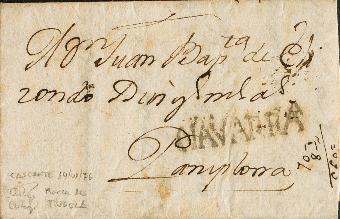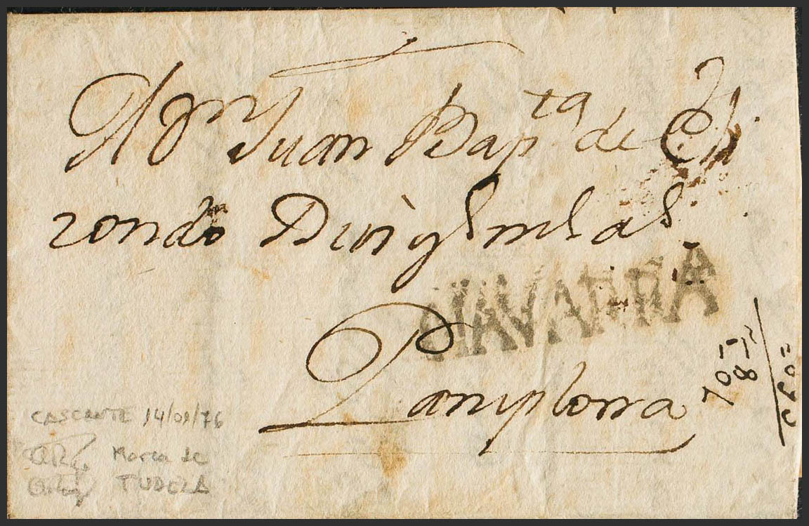 1776. CASCANTE a PAMPLONA. Marca NAVARRA, de Tudela (P.E.5) edición 2004. MAGNIFICA Y RARA.