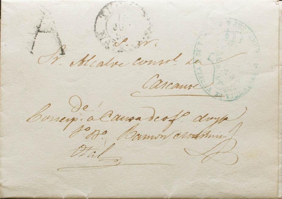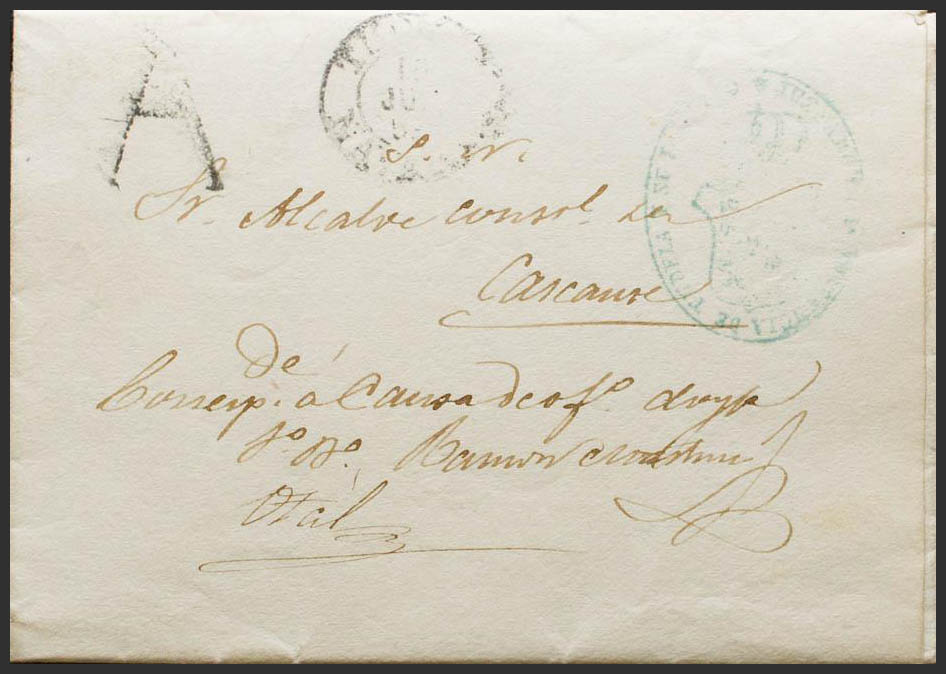 Navarra. Prefilatelia. 1859. TUDELA a CASCANTE. Marca "A", en negro de Tudela (P.E.25) edición 2004. MAGNIFICA Y RARA.