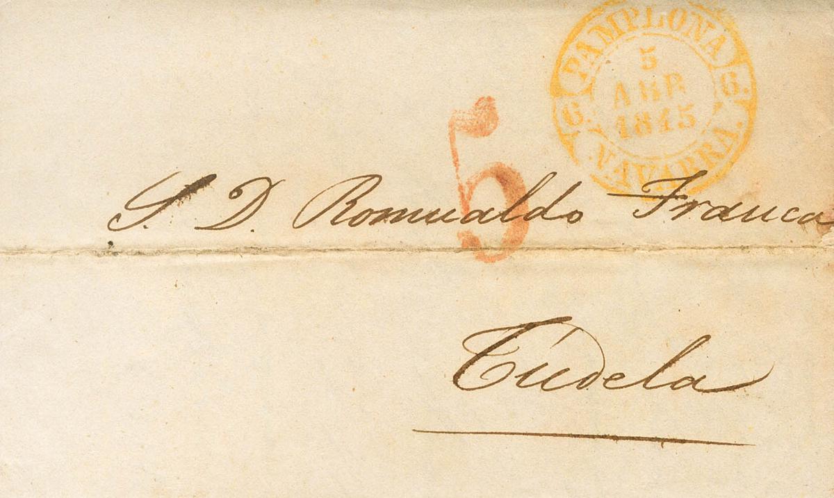 1845. PAMPLONA a TUDELA. Baeza PAMPLONA / NAVARRA, en amarillo. MAGNIFICA.