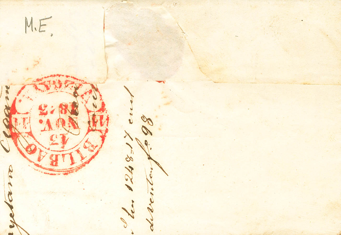 1845. PUENTE LA REINA a BILBAO. Baeza PUENTE LA RNª / NAVARRA, en rojo. MAGNIFICA.