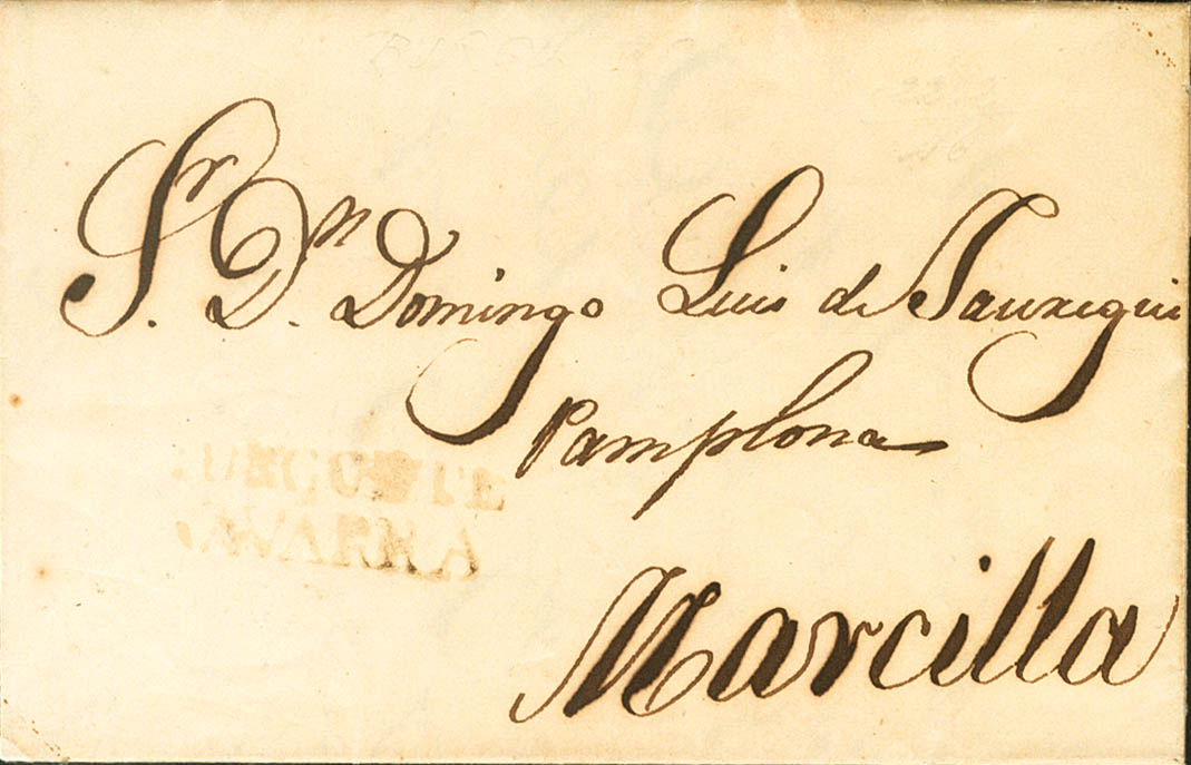 1846. BURGUETE a MARCILLA. Marca BURGUETE / NAVARRA, en tinta de escribir (P.E.1) edición 2004. MAGNIFICA.