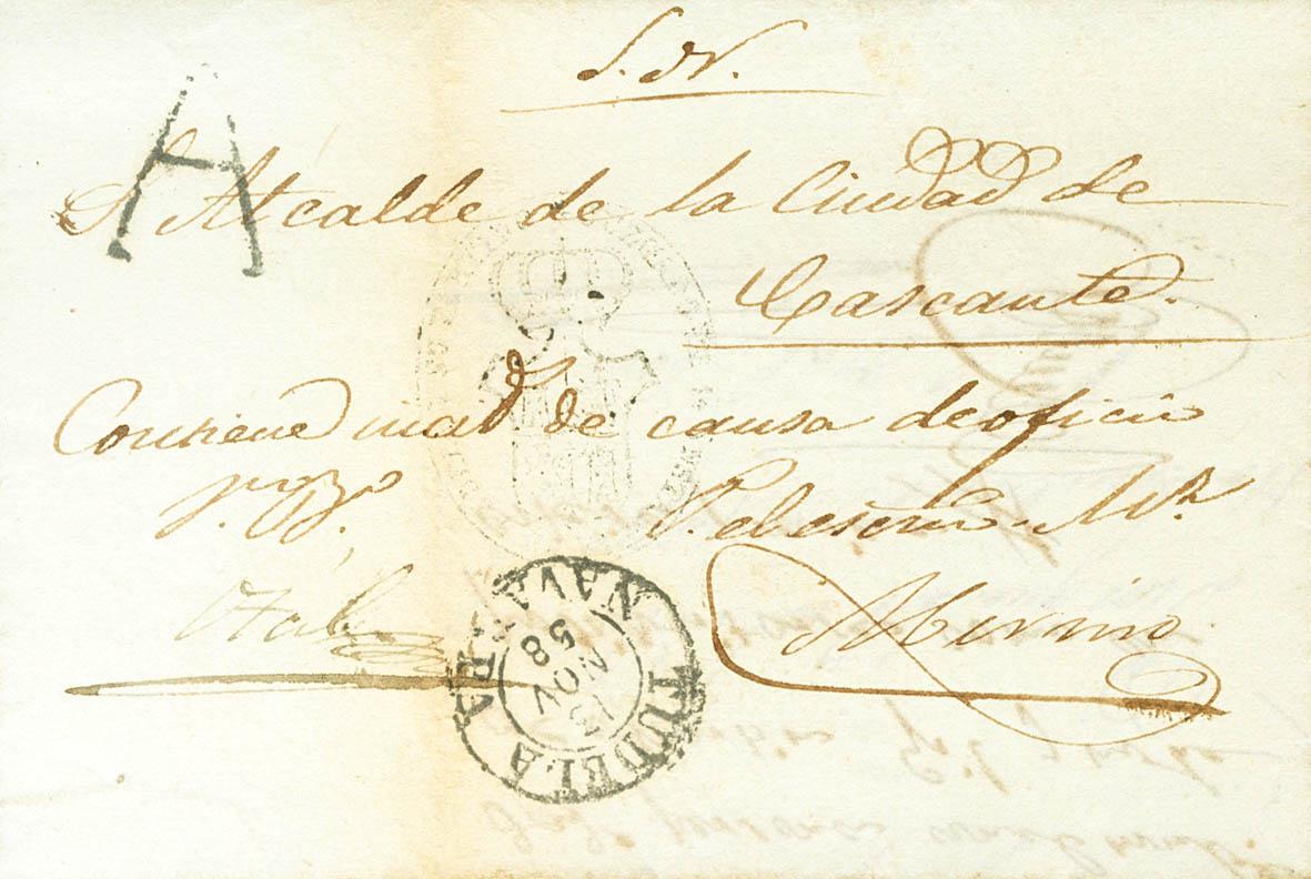 1858. TUDELA a CASCANTE. Marca "A", en negro. Marca de abono (P.E.25) edición 2004. MAGNIFICA Y RARA.