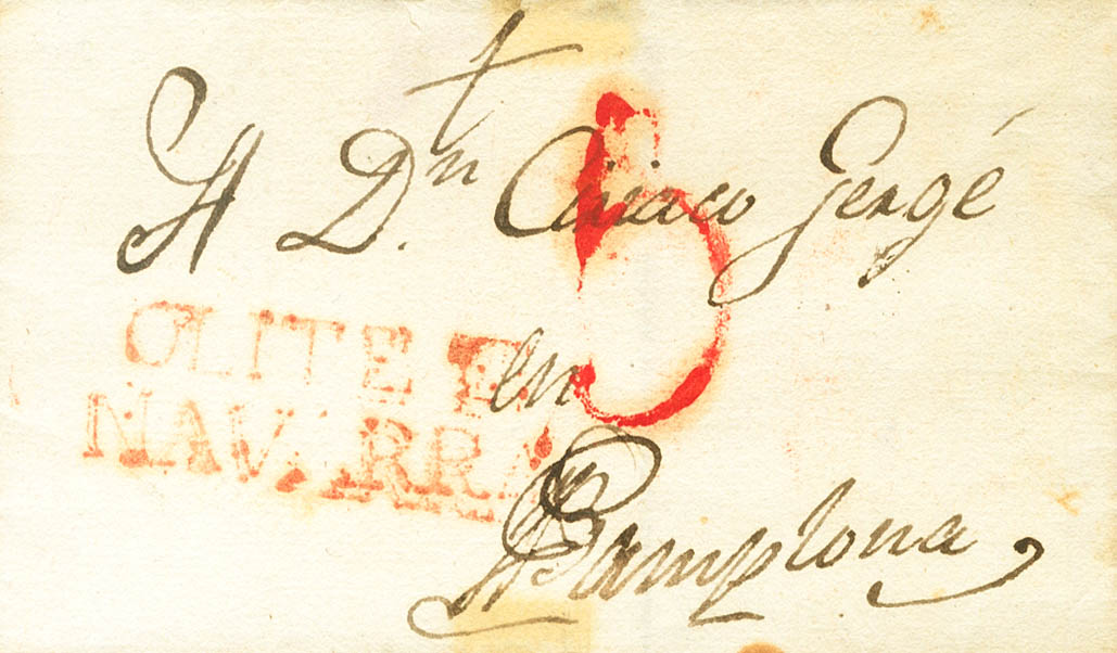 (1827ca). OLITE a PAMPLONA. Marca OLITE DE / NAVARRA, en rojo (P.E.3) edición 2004. MAGNIFICA.