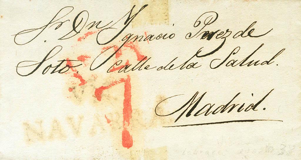 1838. LABRAZA (NAVARRA) a MADRID. Marca VN. / NAVARRA, de Viana (P.E.4) edición 2004. MAGNIFICA Y RARA.