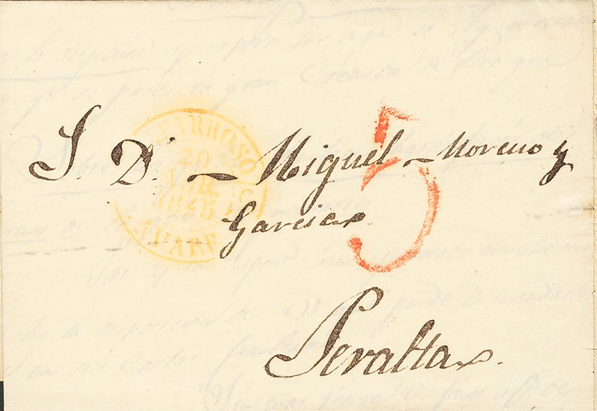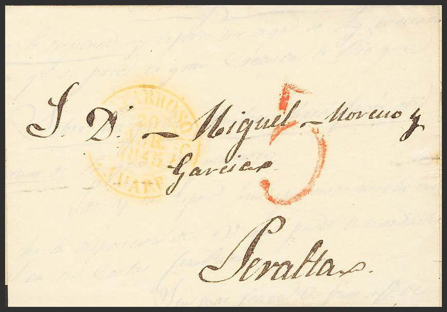 1845. CAPARROSO a PERALTA. Baeza CAPARROSO / NAVARRA, en amarillo (P.E.7) edición 2004. MAGNIFICA Y RARA.