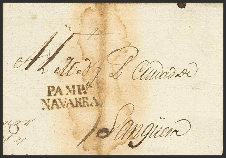 1824. PAMPLONA a SANGÜESA. Marca PAMPª / NAVARRA, en negro (P.E.28) edición 2004, manchas de humedad. MAGNIFICA.