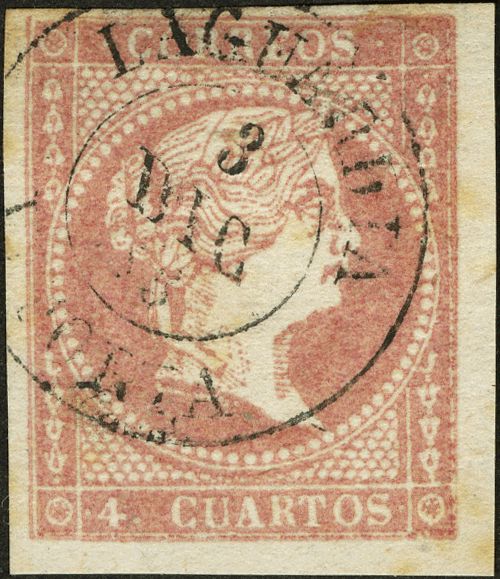 48. 1856. 4 cuartos rojo. Matasello LAGUARDIA / VITORIA.