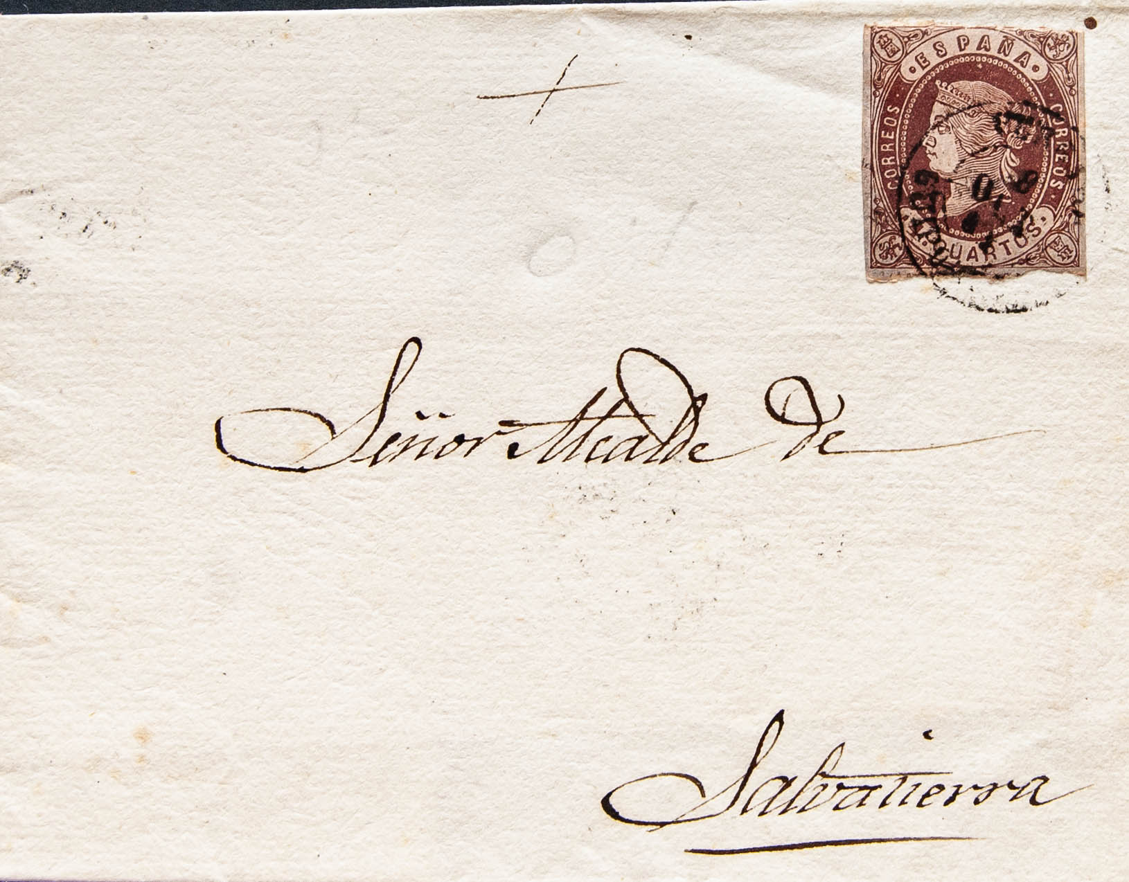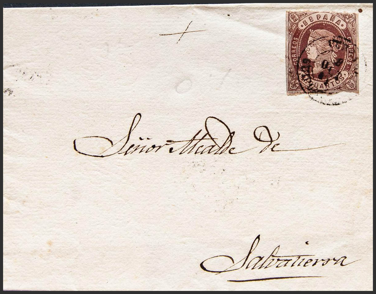 58. 1863. 4 cuartos castaño. VERGARA a SALVATIERRA. Matasello VERGARA / GUIPUZCOA. MAGNIFICA.