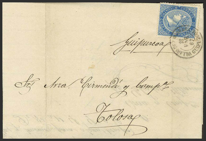 País Vasco. Historia Postal. VILLARL. DE ZUMARRAGA / GUIPUZCOA. MAGNIFICA.