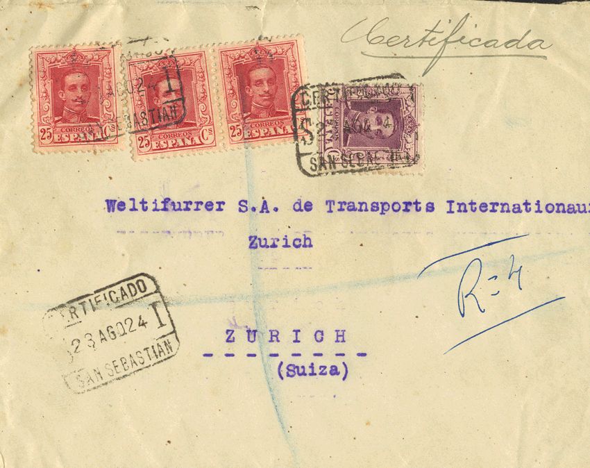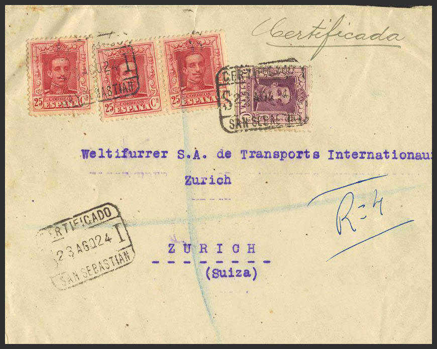 PaÃs Vasco. Historia Postal. CERTIFICADO / SAN SEBASTIAN, al dorso llegada. MAGNIFICA.