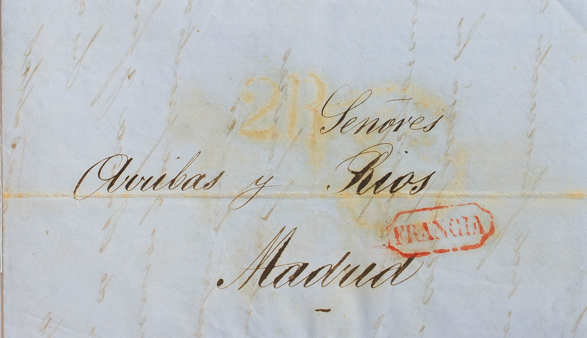 1853. BAYONA (FRANCIA) a MADRID. Marca FRANCIA, en rojo aplicada en tránsito por Irún para indicar su procedencia (P.E.26) edición 2004. MAGNIFICA.
